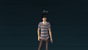 | Самая модная футболка (черн. медведь) | Самая модная футболка (бел. череп) | Толстовка в сине-фиолетовую полоску | Коричневая куртка без рукавов | Серый топ "Элен" |