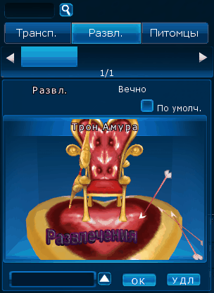Для развлечений доступна функция использования по умолчанию. Для того, чтобы достать нужный предмет таким образом, необходимо установить галочку на сообщение "по умолч." на нужно развлечение, после комбинацией клавиш Alt + N открыть интересующее.
